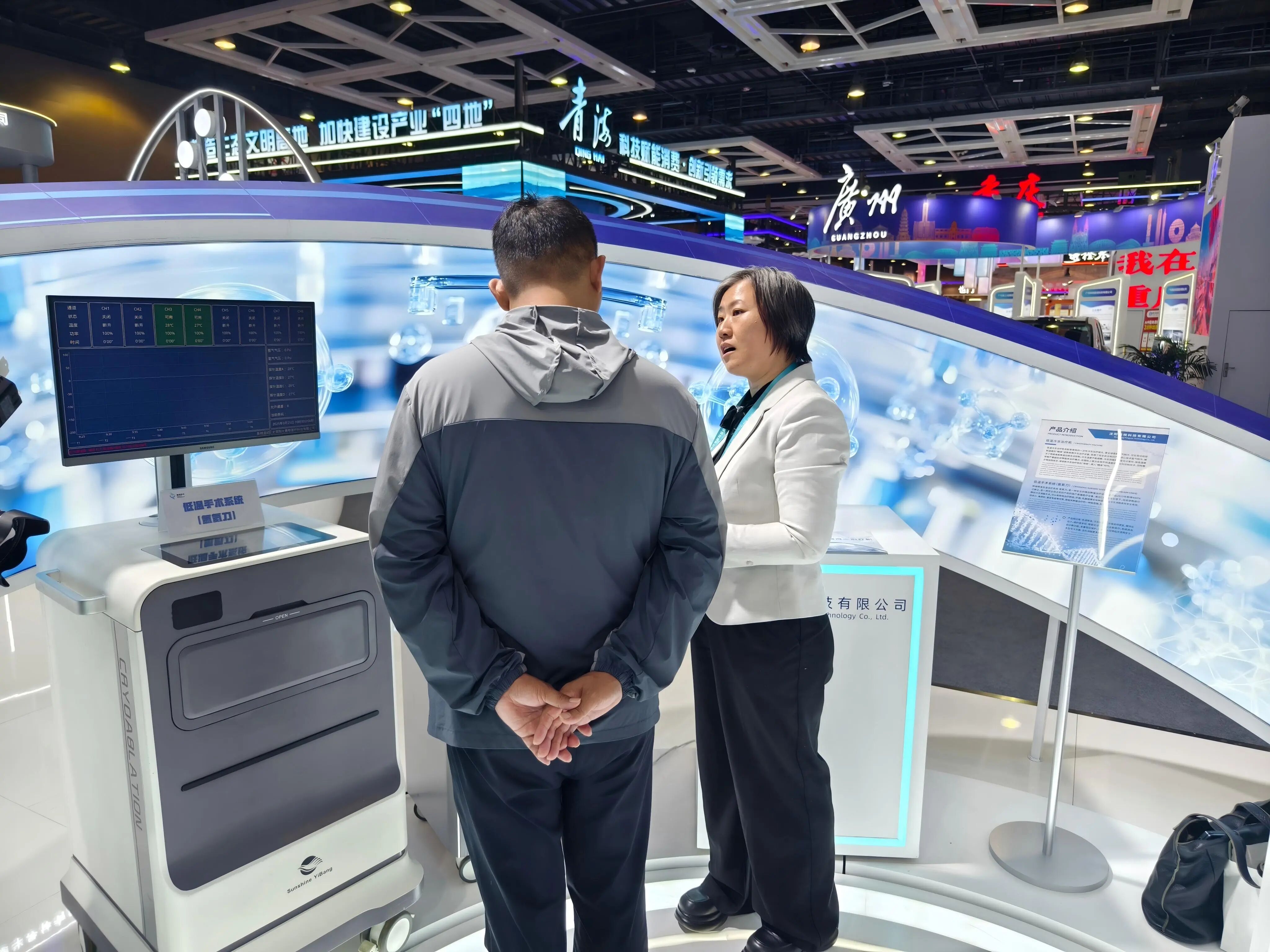 会议期间,辽宁省副省长、党组成员、沈抚示范区党工委书记王利波、党工委副书记、管委会主任李宏德等领导专程莅临鹏悦科技展位参观指导。公司相关负责人就产品特点、核心技术及市场应用作了详细汇报。领导们认真聆听了关于低温精准医疗技术的深度讲解。对于鹏悦科技在该领域取得的突破,领导们给予了高度评价,并表示将持续关注与支持。